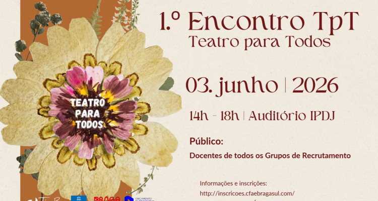 O 1.º Encontro TpT (Teatro para Todos) constitui o momento de apresentação final, reflexão crítica e avaliação de impacto do projeto Teatro para TODOS – Oficinas de Teatro Inclusivas, desenvolvido ao longo do ano letivo em escolas e entidades do concelho de Braga.